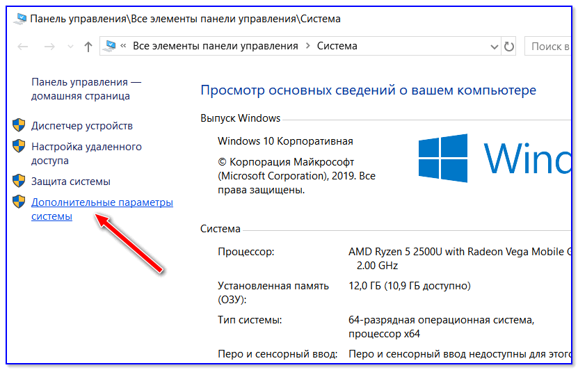 Доп. параметры системы (Windows 10)