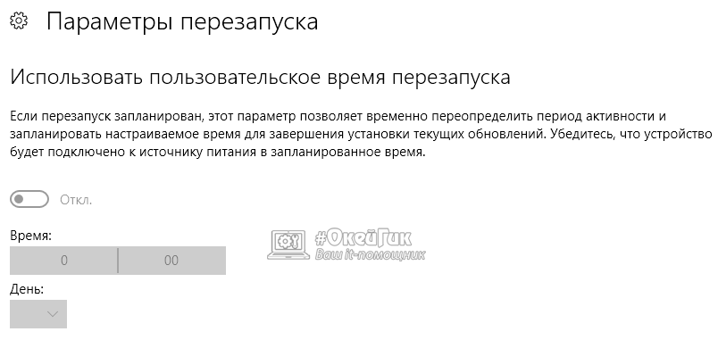 В «Центре обновления Windows» можно настроить параметры перезапуска и обновления так: