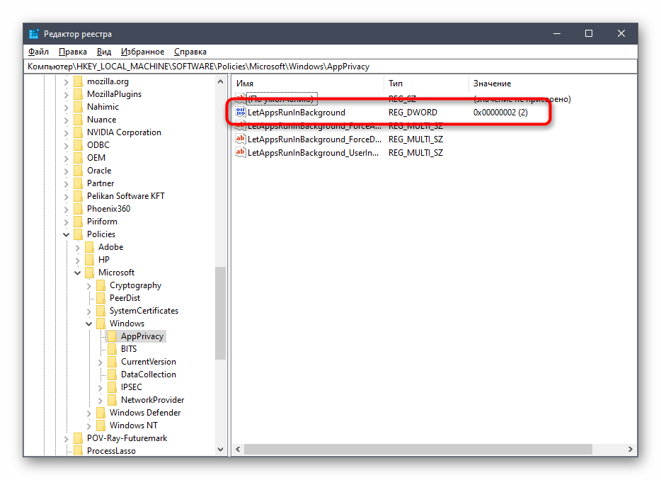 - Установите его значение data равным 1, чтобы в Windows 11 отключить фоновые приложения. Фоновый режим будет отключен для всех приложений сразу.