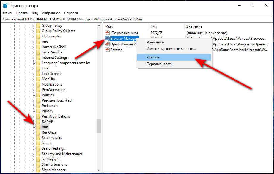Жмём Win+R в появившемся окне вводим команду regedit. Перейдите в папку HKEY_CURRENT_USER далее откройте: SOFTWARE/ Microsoft/Windows/CurrentVersion/ Run. Справа есть список всех программ которые запускаются в фоновом режиме. Выберете правой кнопкой мышки программы которую хотите удалить…