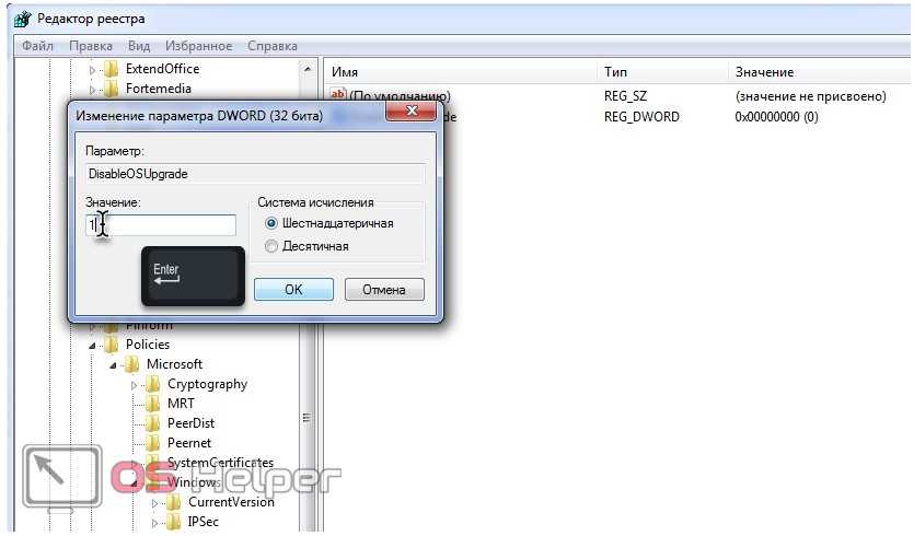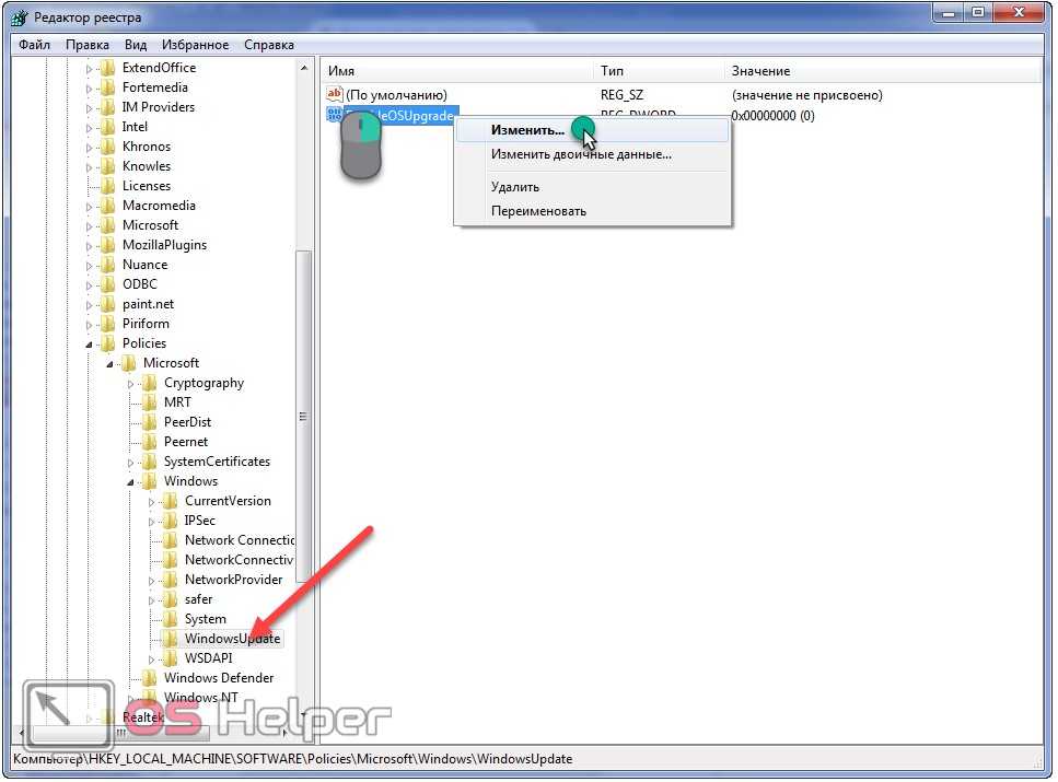 - Дважды кликаем по параметру «DisableOSUpgrade» или вызываем диалог его редактирования через контекстное меню.
