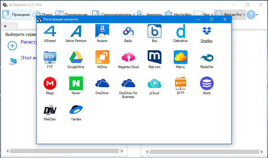 Удобный инструмент для управления и обмена файлами между разными облачными хранилищами. Программа работает с двумя десятками популярных сервисов, среди которых есть Google Drive, Dropbox, One Drive, Mega, Amazon, Mail.ru и Яндекс.Диск, реализована поддержка протоколов FTP, SFTP и WebDAV. Внешне Air Explorer представляет собой двухпанельный файловый менеджер, при подключении облачных хранилищ их содержимое отображается в правой и левой колонке.