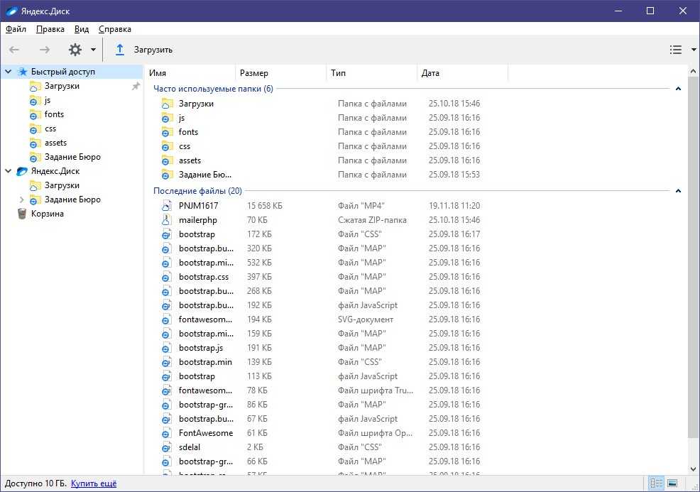 У «Яндекса» отдельный клиент. Но нельзя сказать, что он какой-то неудобный. Окно клиента выглядит как обычное окно в Windows. Тем не менее мне гораздо удобнее, когда облако синхронизируется с диском. Но у отдельного клиента есть и свои достоинства. Вы можете сразу посмотреть, какие файлы синхронизировались, а какие нет.