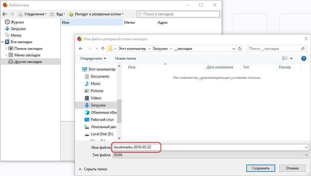 - Укажите имя файла. По умолчанию оно создается как «bookmarks», предлагаю добавить к имени дату, так легче ориентироваться впоследствии.