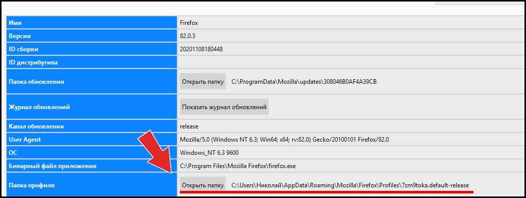 - Найдите на вашем компьютере папку, в которой хранится аккаунт Firefox. В открытом браузере нажмите