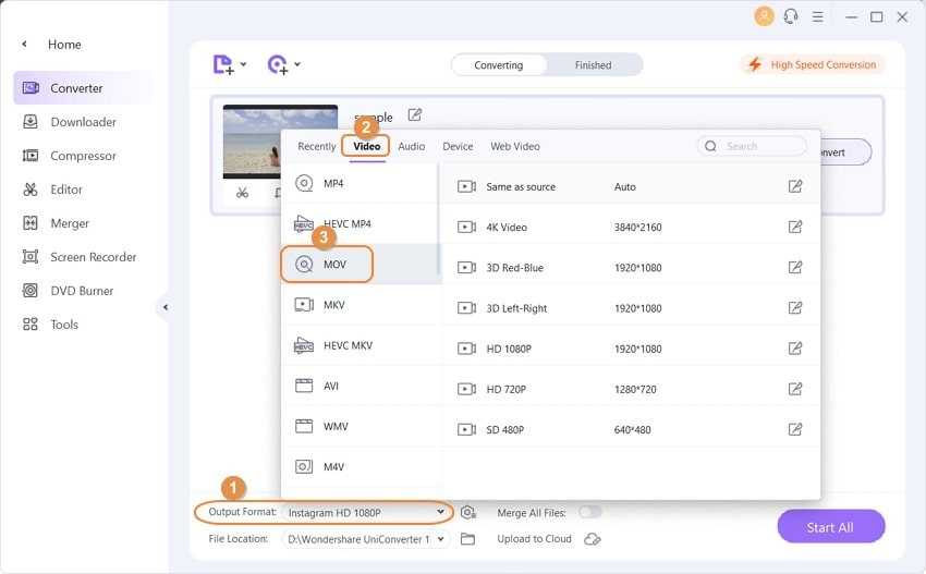 Наконец, нажмите кнопку Конвертировать в нижней правой части интерфейса программного обеспечения. Теперь Wondershare UniConverter (первоначально Wondershare Video Converter Ultimate) начнет конвертировать 3D видео в поддерживаемые VLC форматы с 30-кратной скоростью.