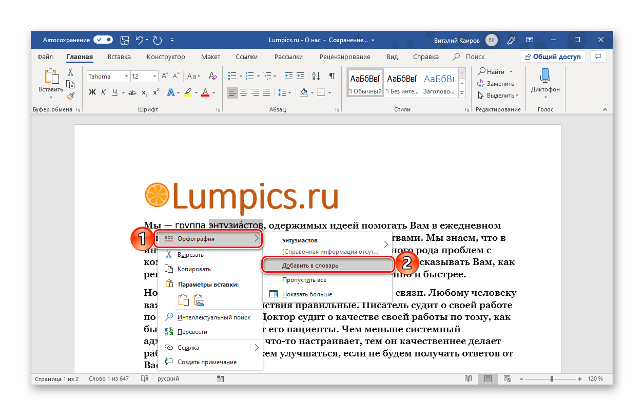 Как и в предыдущих способах, добавьте слово с ударением в словарь или пропустите его проверку, чтобы убрать красное подчеркивание.