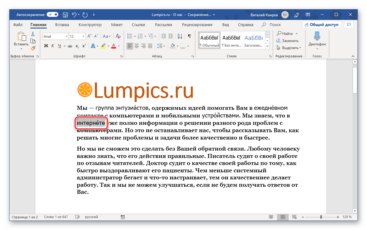 Теперь вы знаете о том, как поставить ударение над буквой посредством исключительно стандартных возможностей Майкрософт Ворд.
