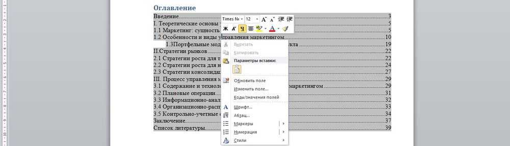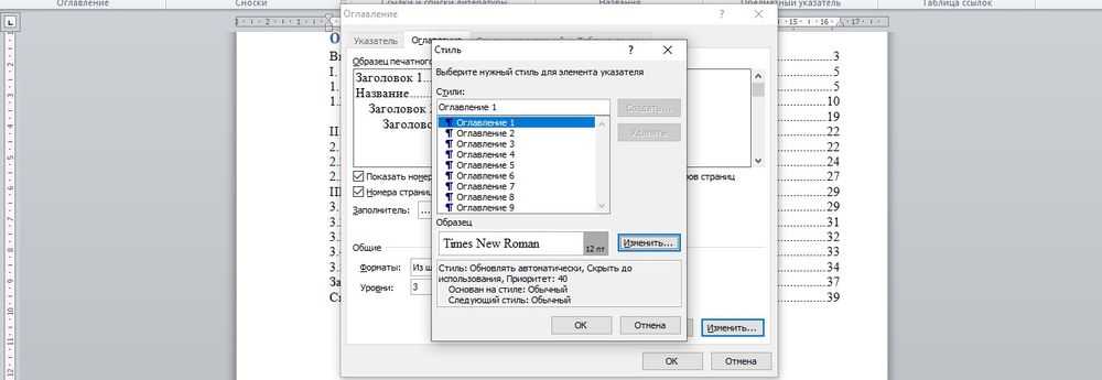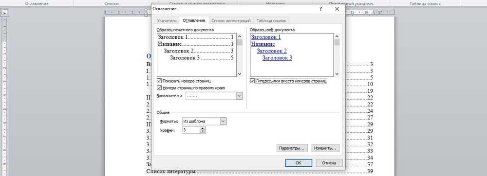 Форматирование оглавления в Word