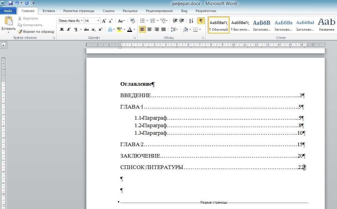 Как сделать оглавление в реферате Ворд вручную
