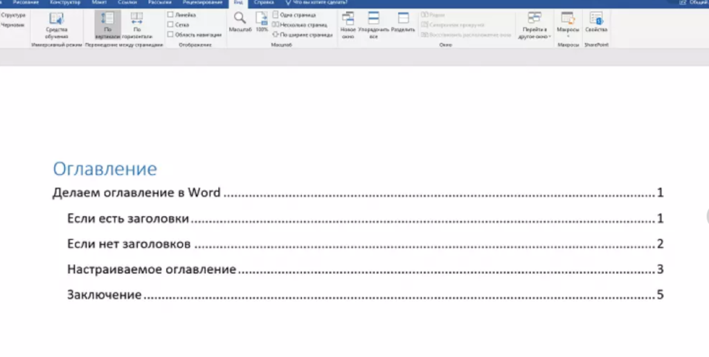 Более эффективный и эргономичный способ. При этом обязательно выполнение одного условия – документ должен быть разбит на разделы с заголовками. Следует выполнить следующие шаги: