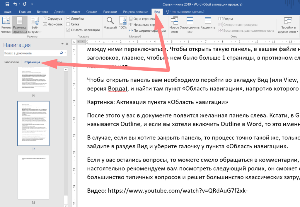 Как открыть область навигации в Ворде