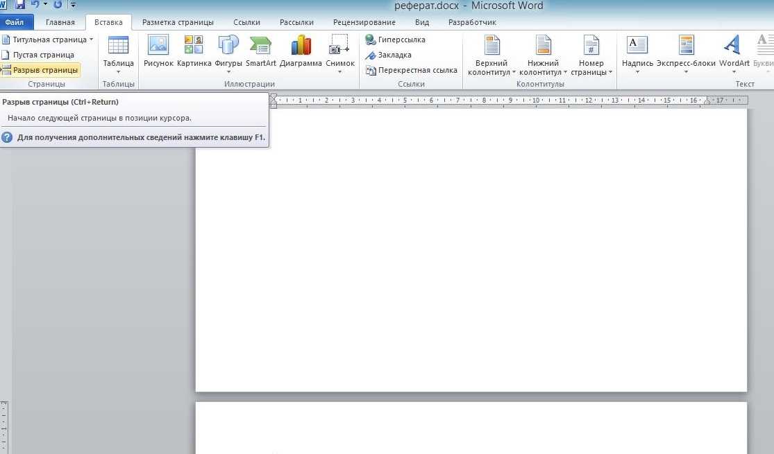 Рисунок 13. Как вставить разрыв страницы