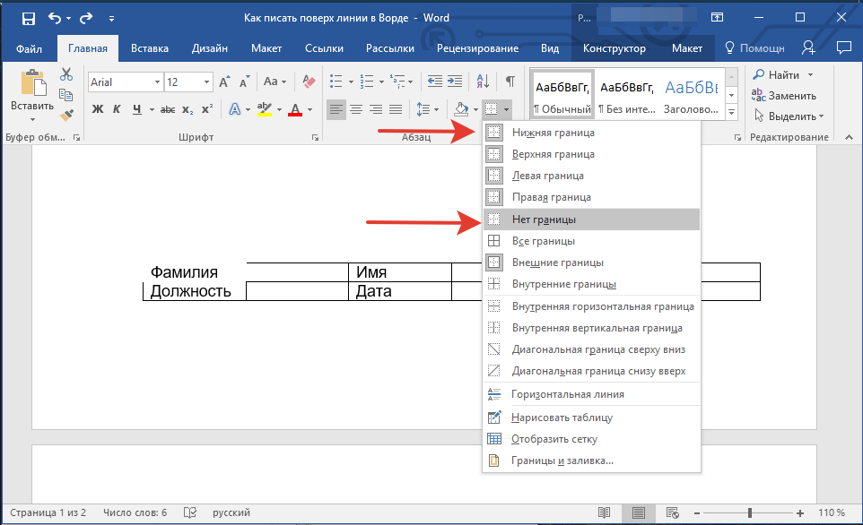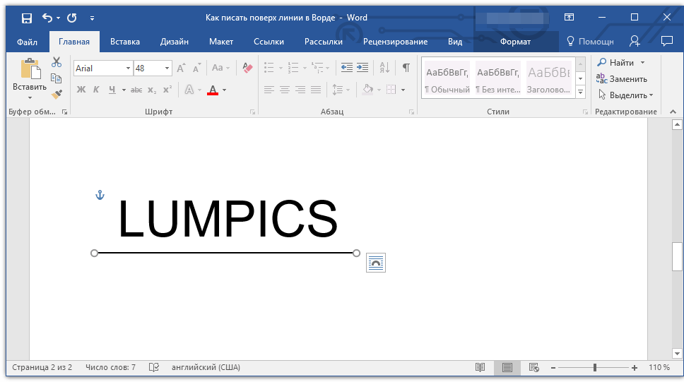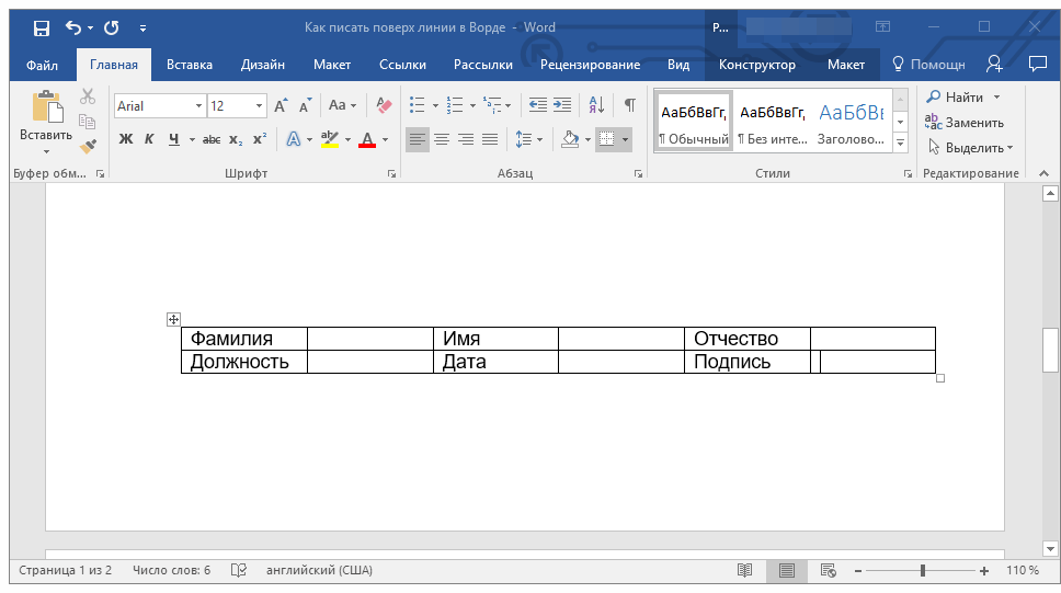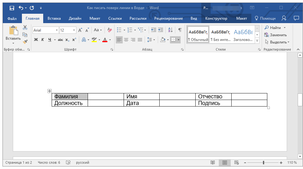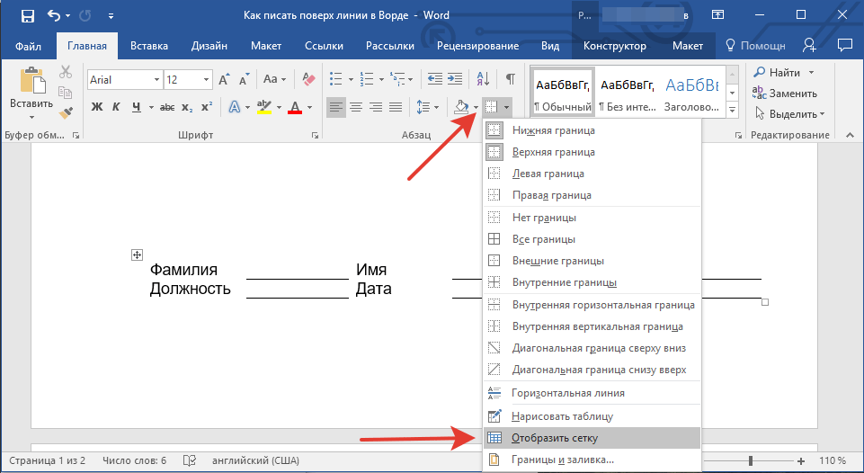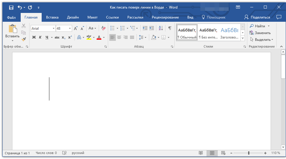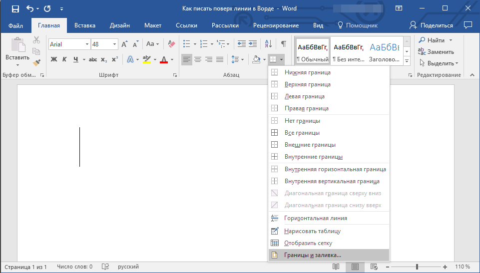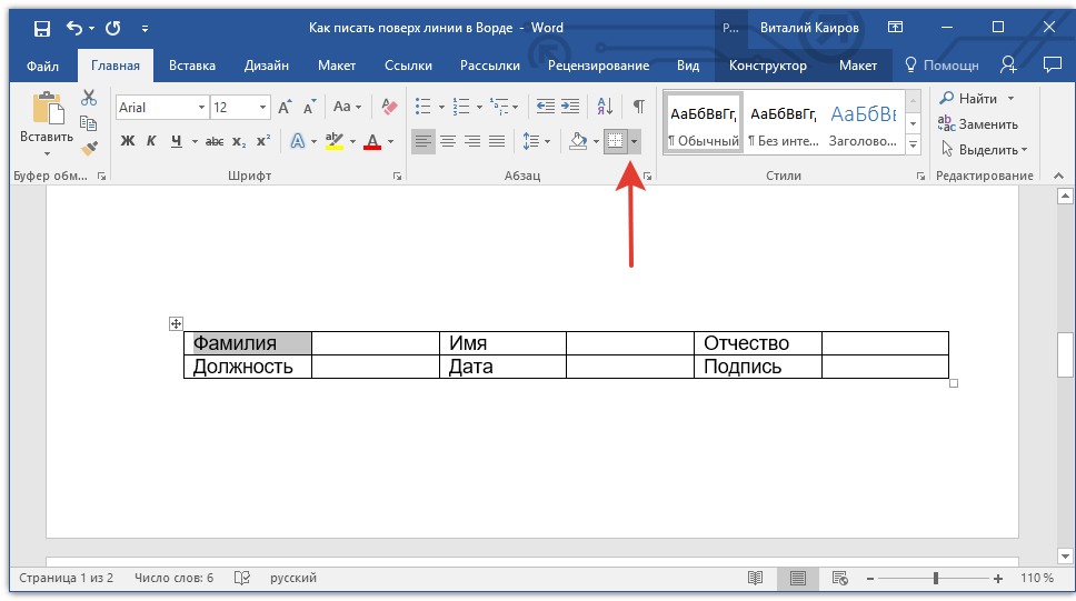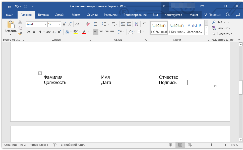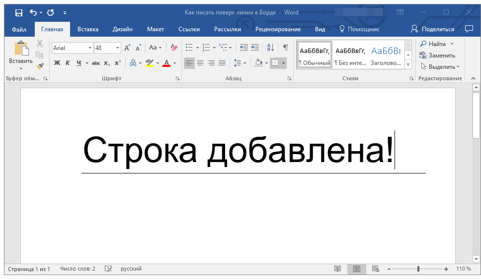 Необходимость писать поверх строки наиболее актуальна именно для бланков и других документов подобного типа. Существует, как минимум, два метода, с помощью которых можно добавить горизонтальную линию и разместить непосредственно над ней требуемый текст. О каждом из этих методов по порядку.