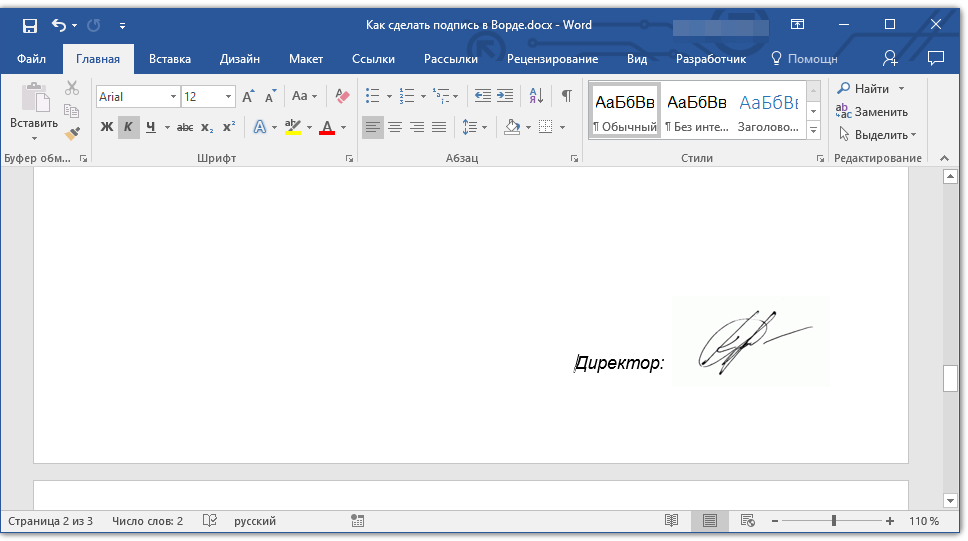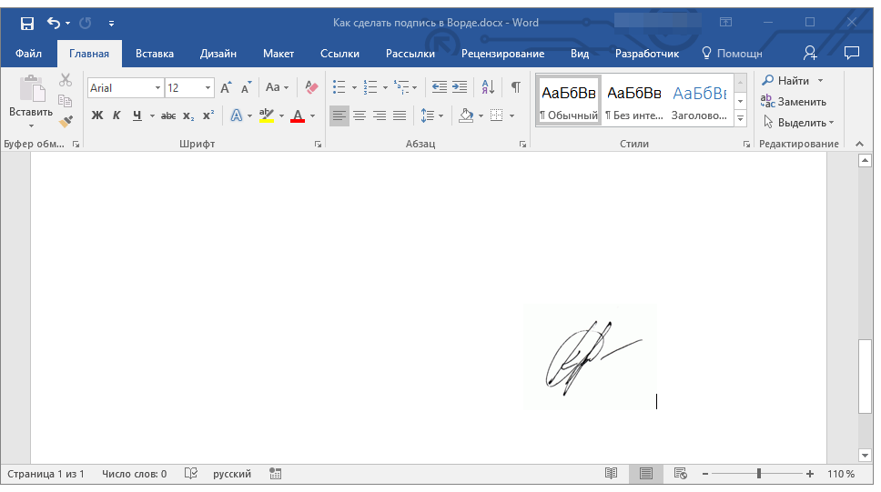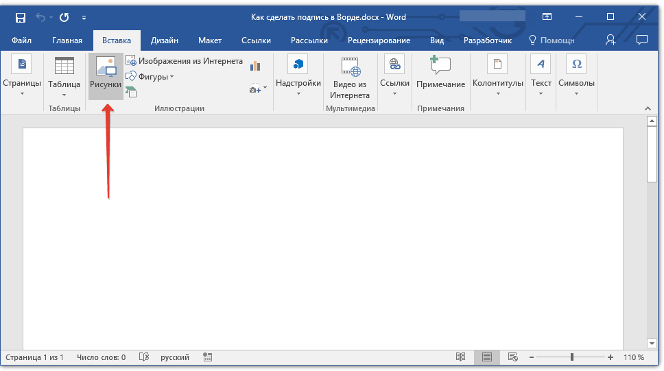 Как подписать документ Word