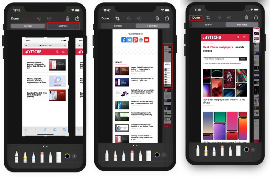Вы вернетесь на страницу, которую хотите захватить. Прокрутите вниз, пока не включите весь контент, а затем коснитесь экрана, чтобы закончить. Теперь ваш снимок экрана будет отображаться в галерее телефона.
