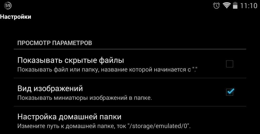 5. Теперь перейдите к настройкам вашего файлового менеджера и снимите галочку напротив пункта «Показывать скрытые файлы».