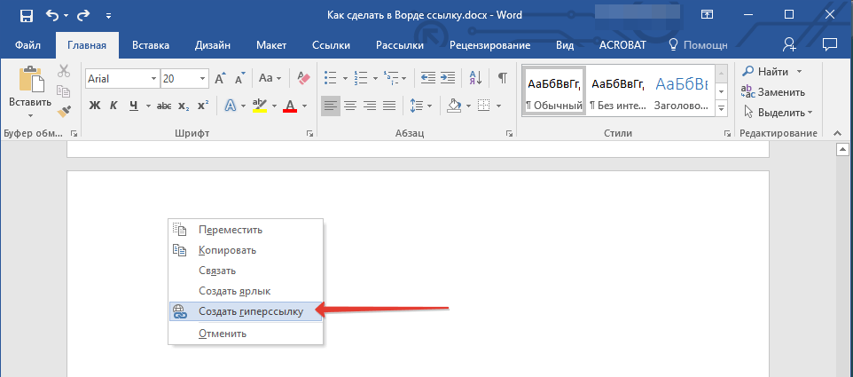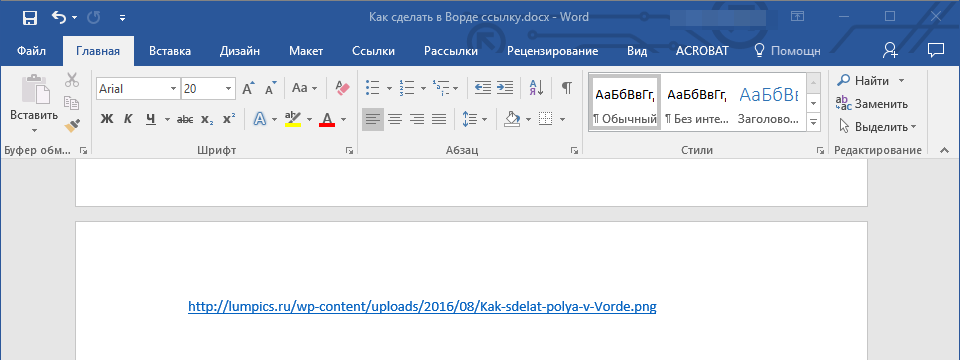 Как вставить ссылку в вордовский документ