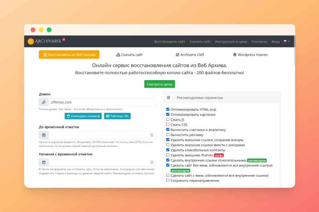 Затем останется залить его на хостинг, подключить к домену и заменить пути к файлам на относительные. Далеко не все арбитражники знают об этом способе, но он позволяет сэкономить время. Поэтому однозначно стоит рассмотреть сканеры веб-архива как альтернативу стандартным парсерам контента.