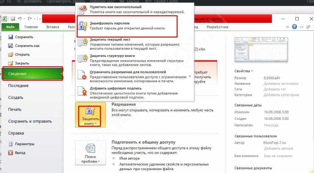 Чтобы запаролить лист документа Эксель, сделайте следующие шаги: