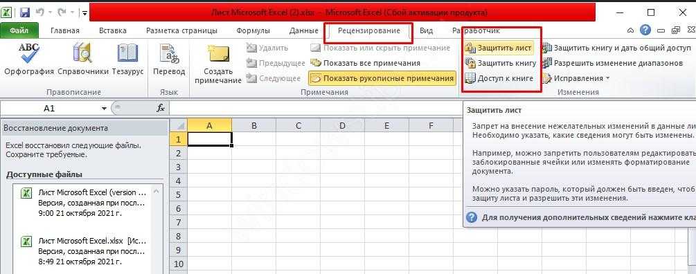 Снятие защиты с листа и книги Excel