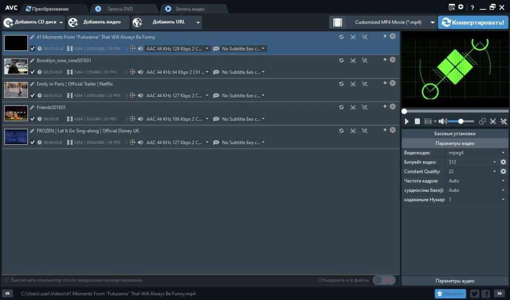 - Возможность пакетного кодирования файлов помогает сэкономить массу времени в процессе кодирования.