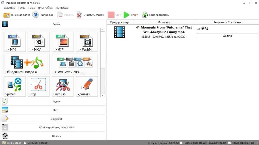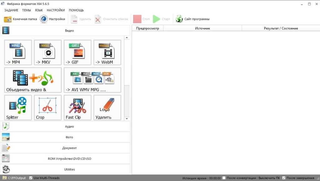 Format Factory – это функциональный конвертер для преобразования медиафайлов различного типа. Дополнительно программа предлагает базовые функции редактирования: обрезка, склеивание, переворот. Софт включает в себя готовые пресеты сжатия для быстрой работы и ручные настройки.