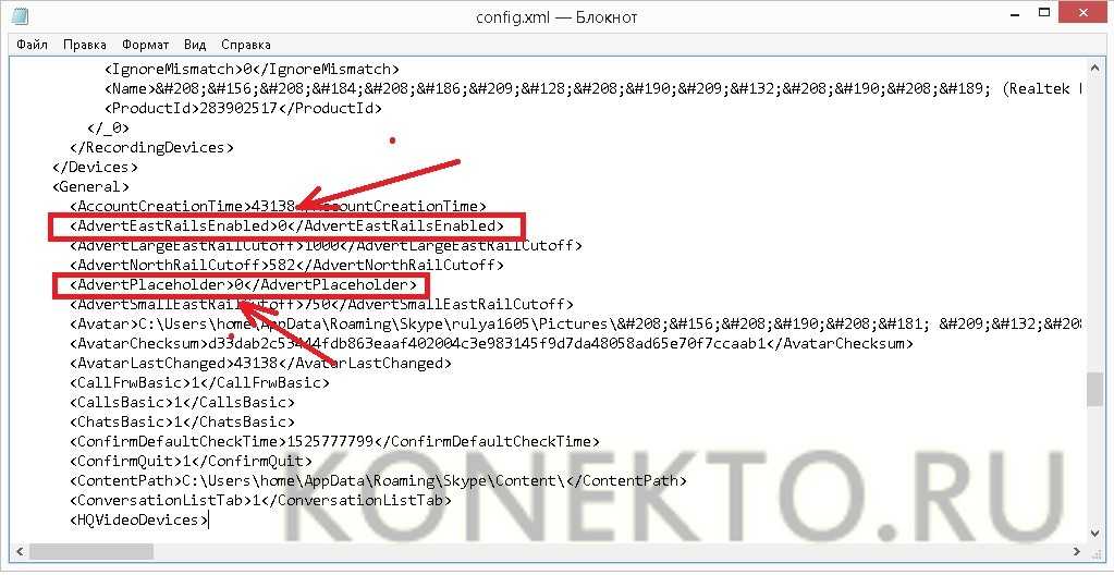 Перейдите: диск с ОС → Users (Пользователи) → Имя пользователя → AppData (папка скрытая) → Roaming → Skype → папка с вашим логином в программе → файл: config.xml. Измените в файле в пунктах AdvertPlaceholder и AdvertEastRailsEnabled значение «1» на «0» → сохраните изменения