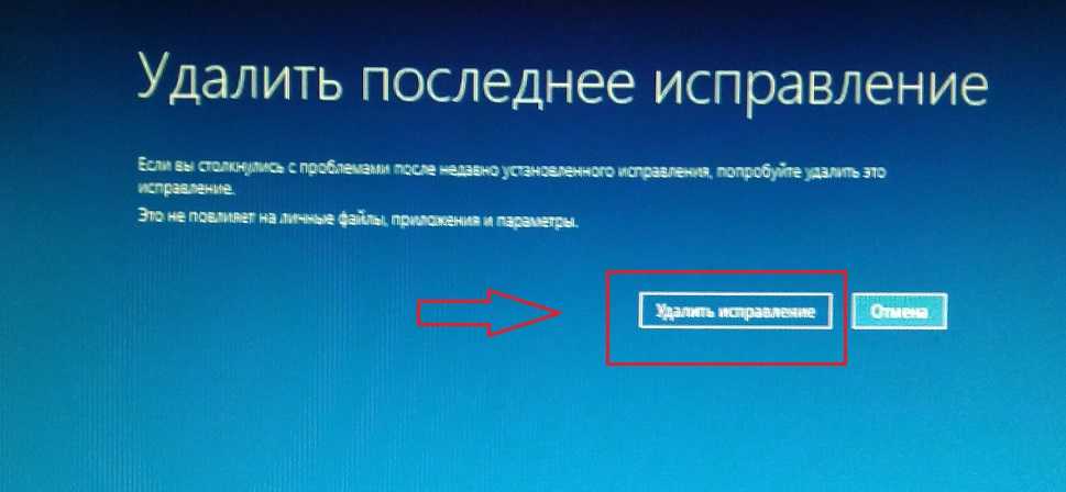 Выбираем Удалить последнее обновление:
