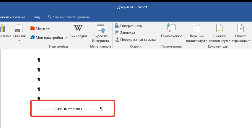 Чтобы понять, что является причиной появления пустого листа в Word, включите непечатаемые знаки.