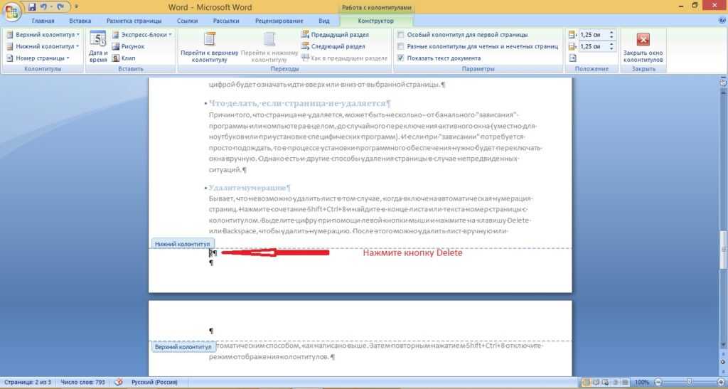 Если разрыв раздела установлен в средней части документа, после удаления нарушится форматирование текста. Поэтому, если вам нужно оставить прежнее форматирование после этой точки, ничего не удаляйте. В противном случае форматирование текста, расположенного после разрыва раздела, распространиться и на остальной документ.