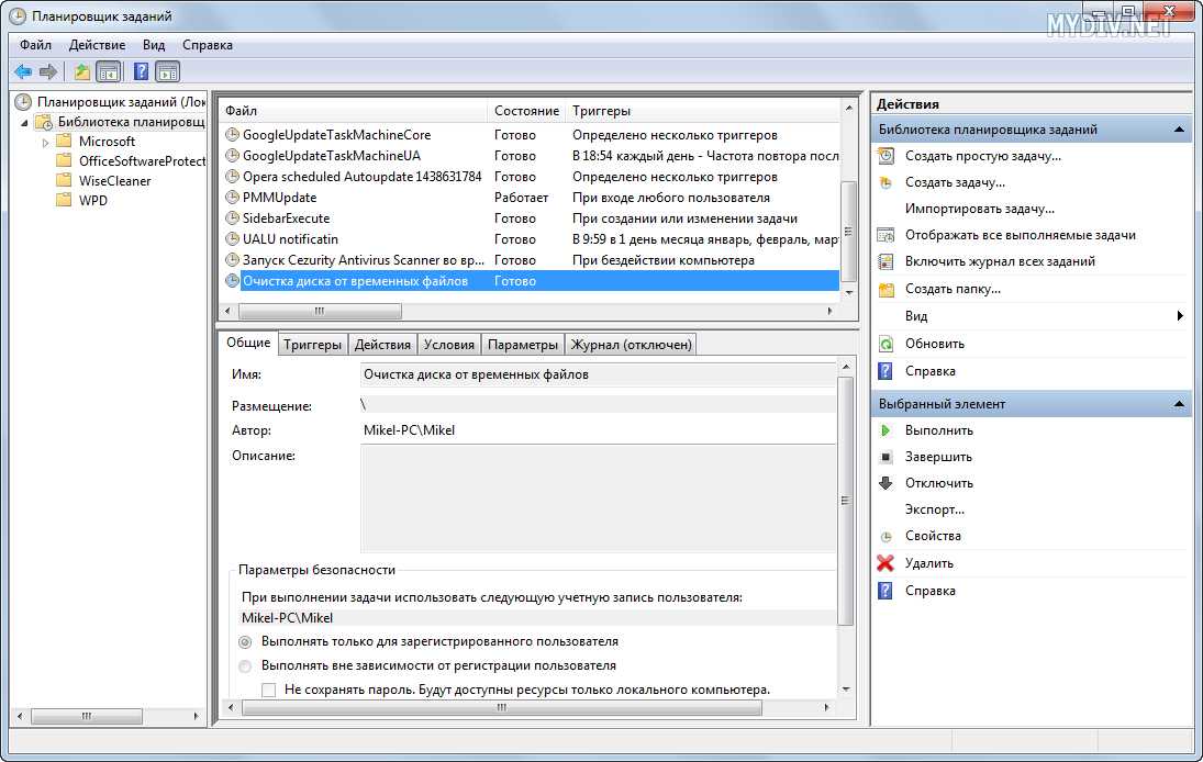 Если у вас отпала необходимость в автоматической очистке системы, то вам достаточно выбрать задачу в списке активных заданий, а потом перейти в меню Действие – Удалить.