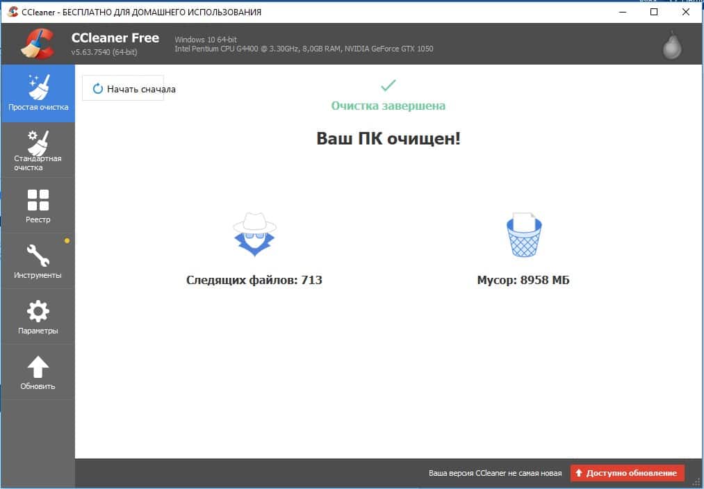 После завершения процедуры удалять программу не стоит, так как очистку стоит выполнять регулярно, да и утилита дополнительно помогает восстанавливать реестр.