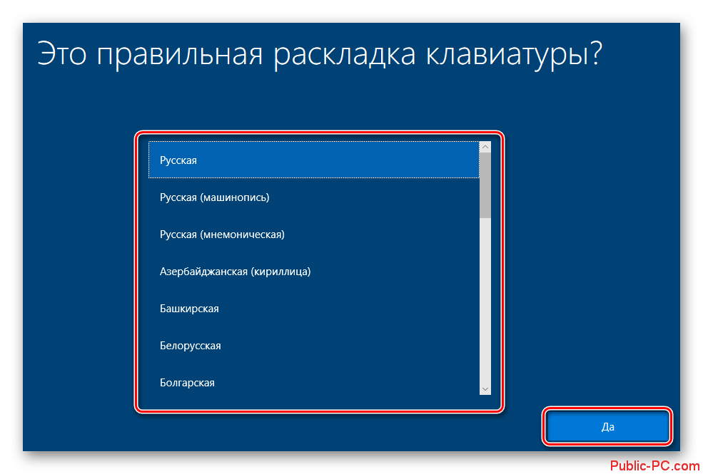 - Выберите язык и раскладку клавиатуры. Нажмите «Далее», чтобы продолжить установку системы.