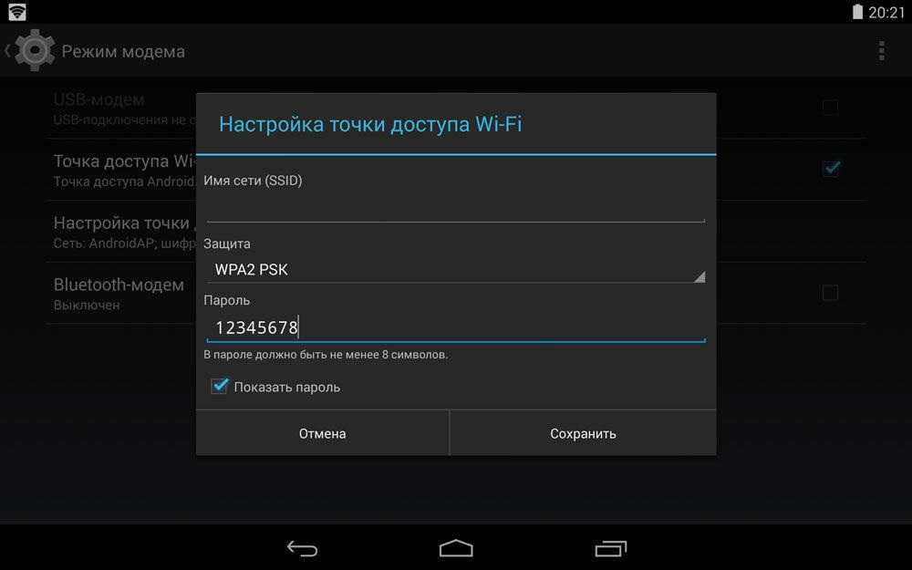 На закладке «Точка доступа» в поле «Ключ сети» вы можете посмотреть и при желании изменить пароль Wi-Fi сети.