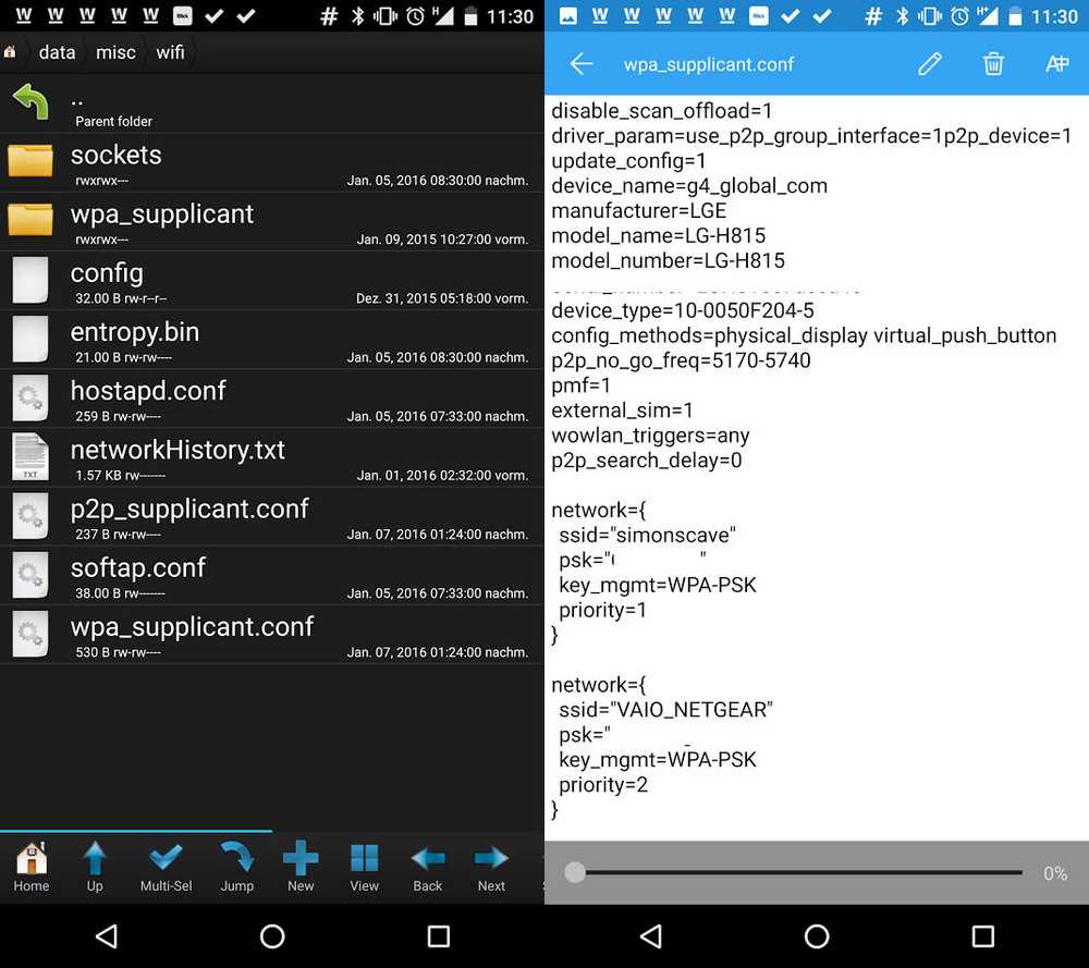 Это наиболее простой способ, при помощи которого можно понять, как на телефоне узнать пароль от Wi-Fi. В остальных случаях путь может быть другим, но он завершается открытием идентичной папки с просмотром тех же файлов.