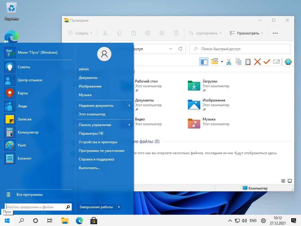 После применения этого твика нужно перезапустить Windows Explorer или завершить текущий сеанс Windows и залогиниться снова. Панель задач примет более привычный вид, но при этом в ней «сломаются» некоторые фичи вроде группировки приложений, кроме того, отвалится меню «Пуск» и строка поиска. Главное меню можно будет вернуть с помощью одной из бесплатных утилит, речь о которых пойдет дальше, а поиск все еще будет работать в проводнике.