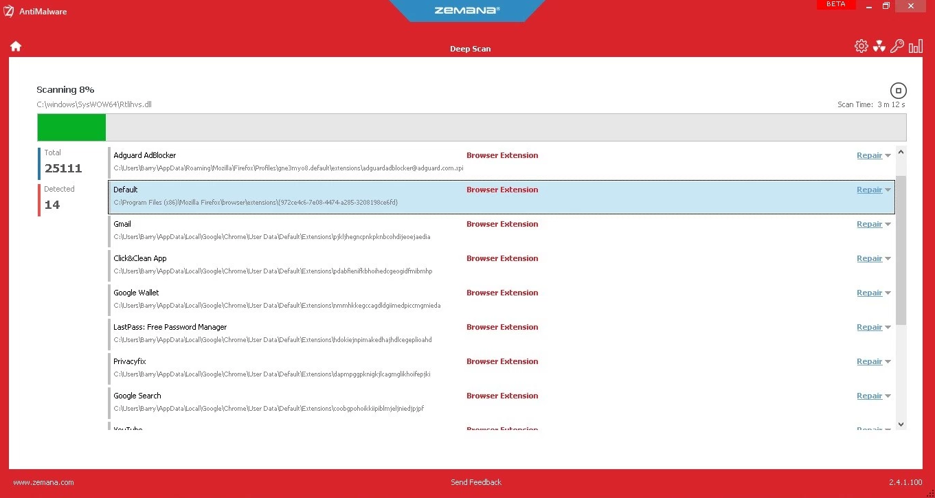 Zemana неплохо справляется с удалением плагинов в браузерах, наличие которых часто приводи к появлению всплывающих рекламных сообщений.