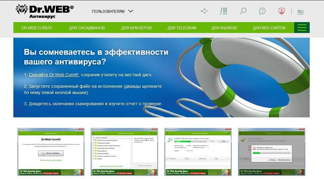 Вылечить домашний ПК от вирусов поможет бесплатная утилита под названием «Доктор Веб». Правильное наименование программы — Dr.Web CureIt. Это утилита, которую нужно установить на свой ПК. Правда, Dr.Web CureIt не лечит, а выявляет угрозы и предлагает их удалить или поместить на карантин. При заражении ОС желательно проводить сканирование из «безопасного режима».