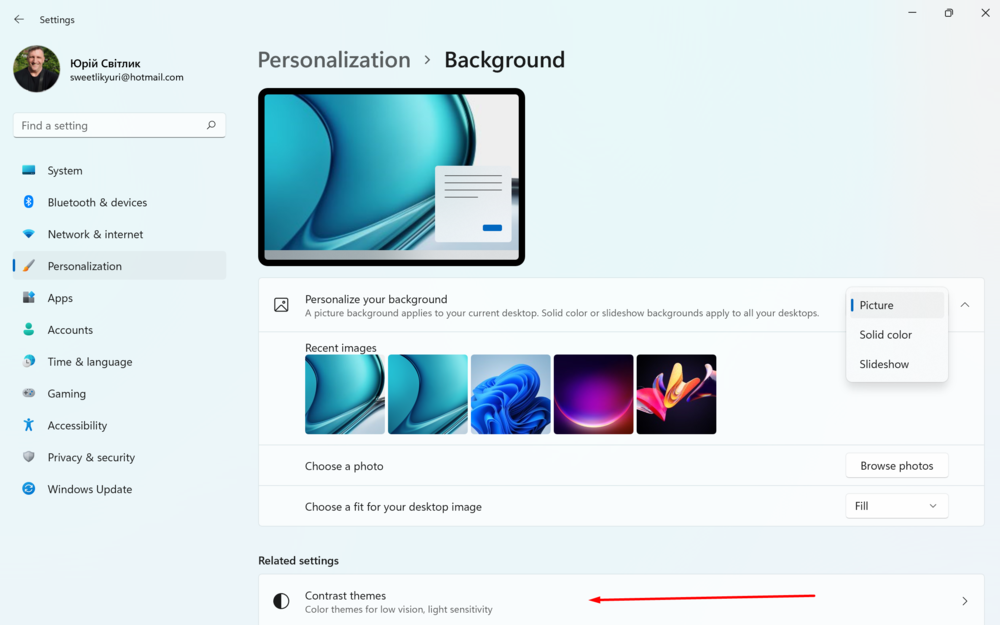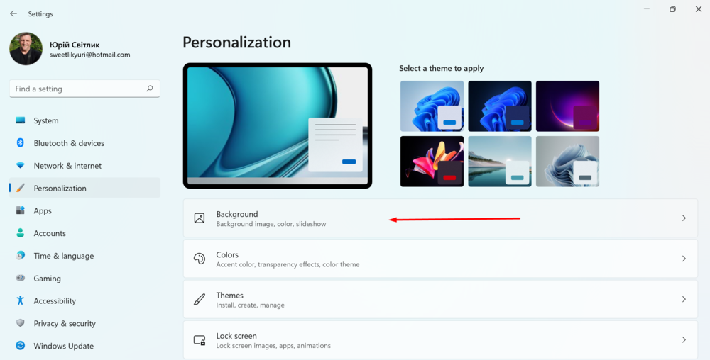 В первую очередь у вас есть возможность изменить фон Рабочего стола. В самой Windows 11 есть достаточное количество фоновых заставок, чтобы преобразить ваш ноутбук. Сделать это довольно просто: заходите в раздел Фон, выбираете понравившуюся картинку, и она практически мгновенно появится на вашем Рабочем столе. Все легко и просто.