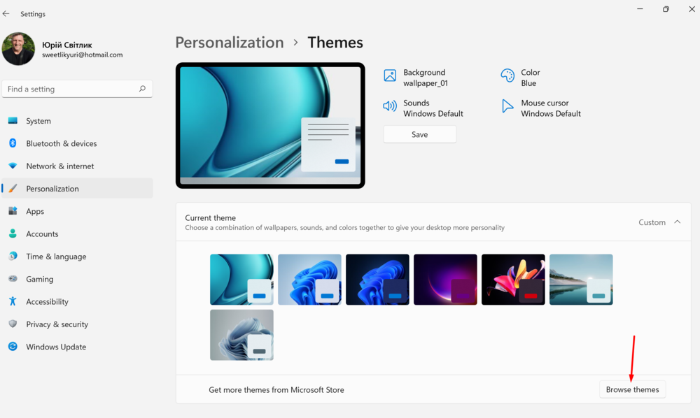 Если вам недостаточно имеющихся в этом разделе тем, то их можно загрузить из Магазина Microsoft. Нажимаете на Просмотр тем и окажетесь в магазине, где вашему вниманию будет предложено множество интересных тем для интерфейса.