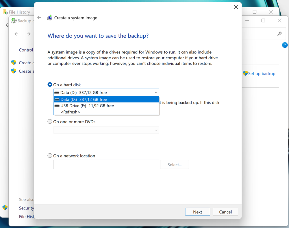 Вы можете использовать множество доступных сторонних программных продуктов. Однако, в Windows 11 по-прежнему есть возможность использовать привычный инструмент резервного копирования образа системы, позволяющий создавать полную резервную копию во внешнем хранилище, которое можно отключить и сохранить в безопасном месте. Следует отметить, что официально Microsoft прекратила поддержку функции резервного копирования, но она по-прежнему доступна для создания временной полной резервной копии.