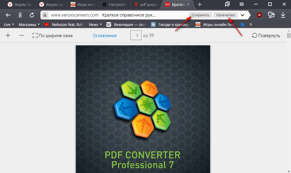 Укажем все варианты печати PDF документа в контексте Яндекс Браузера:
