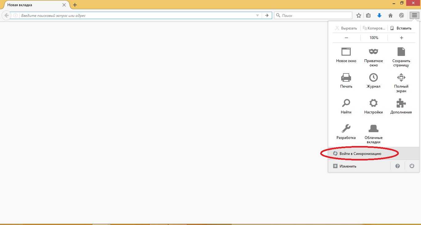 Копирование в аккаунт Firefox