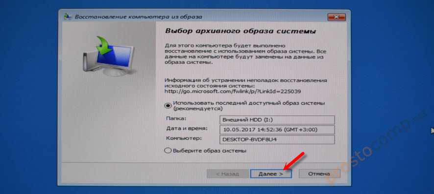 Как происходит восстановление Windows 7 из созданного нами архивного образа