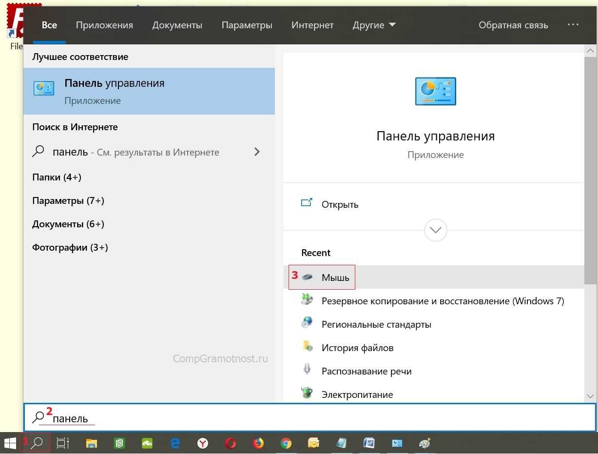 - Кликните по значку лупы («Поиск») в панели задач (1 на рис. 4).