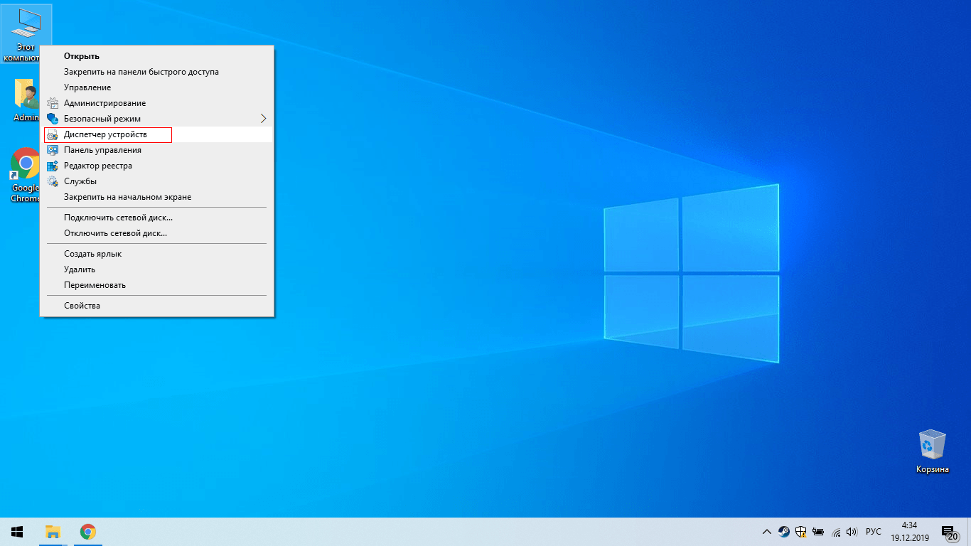 Установка драйверов к операционной системе Windows 10, в основном проходит в автоматическом режиме, сразу после установки ОС и подключения к интернету. Вы получаете через Центр обновления, как сами обновления так и драйвера к комплектующим компьютера. Чтобы посмотреть установлены драйвера или нет нужно — Кликнуть правой клавишей мышки по значку «Этот компьютер» и выбрать «Диспетчер устройств» (Рис.32).