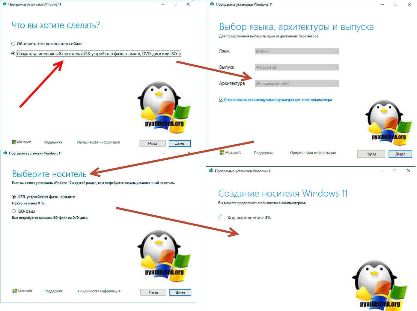 Create Windows 11 Installation Media: эта опция позволяет вам выполнить чистую установку Windows 11 на вашем компьютере, используя Windows 11 ISO. Для установки на ваш компьютер потребуется чистый DVD-диск или USB-накопитель. Следуйте указаниям от Microsoft для установки Windows 11, нажав кнопку «Перед тем, как начать» «Before you begin».