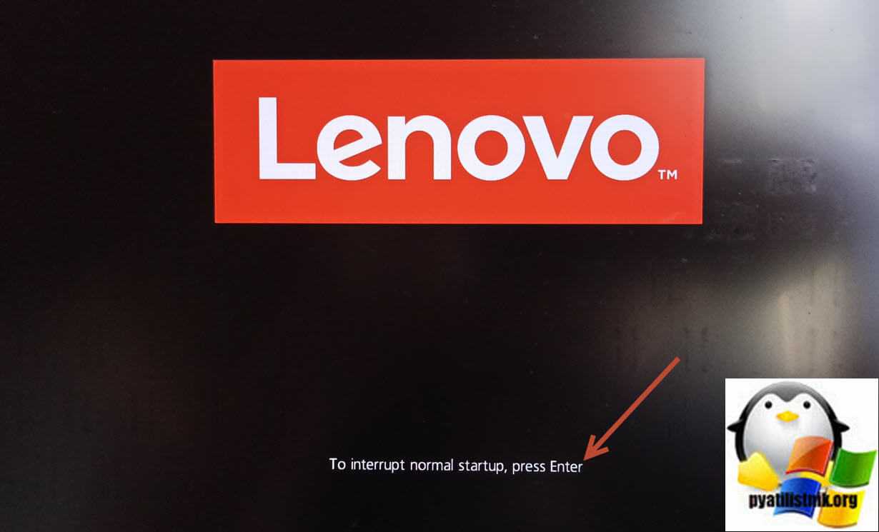 Вот как это выглядит на ноутбуке Lenovo T580. При загрузке нажимаем «Enter»,