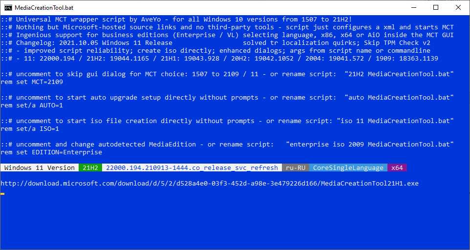 - Для установки «чистой» Windows 11 нужно запустить bat-файл MediaCreationTool. Выбрать из списка систему, то есть версию «11».